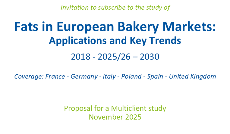 The Fats in European Bakery Markets study will be published in February 2026. To learn more, please click on the proposal above or contact us via the form below – our team will get in touch with full details. If you require further information or would like to discuss subscription options, contact Ségolène Foissac, Consultant Bakery, on 0033 4 50 40 24 00 or s.foissac@girafood.com. Follow Gira on LinkedIn to keep up to date on what is new in this sector and what other markets Gira is currently researching.